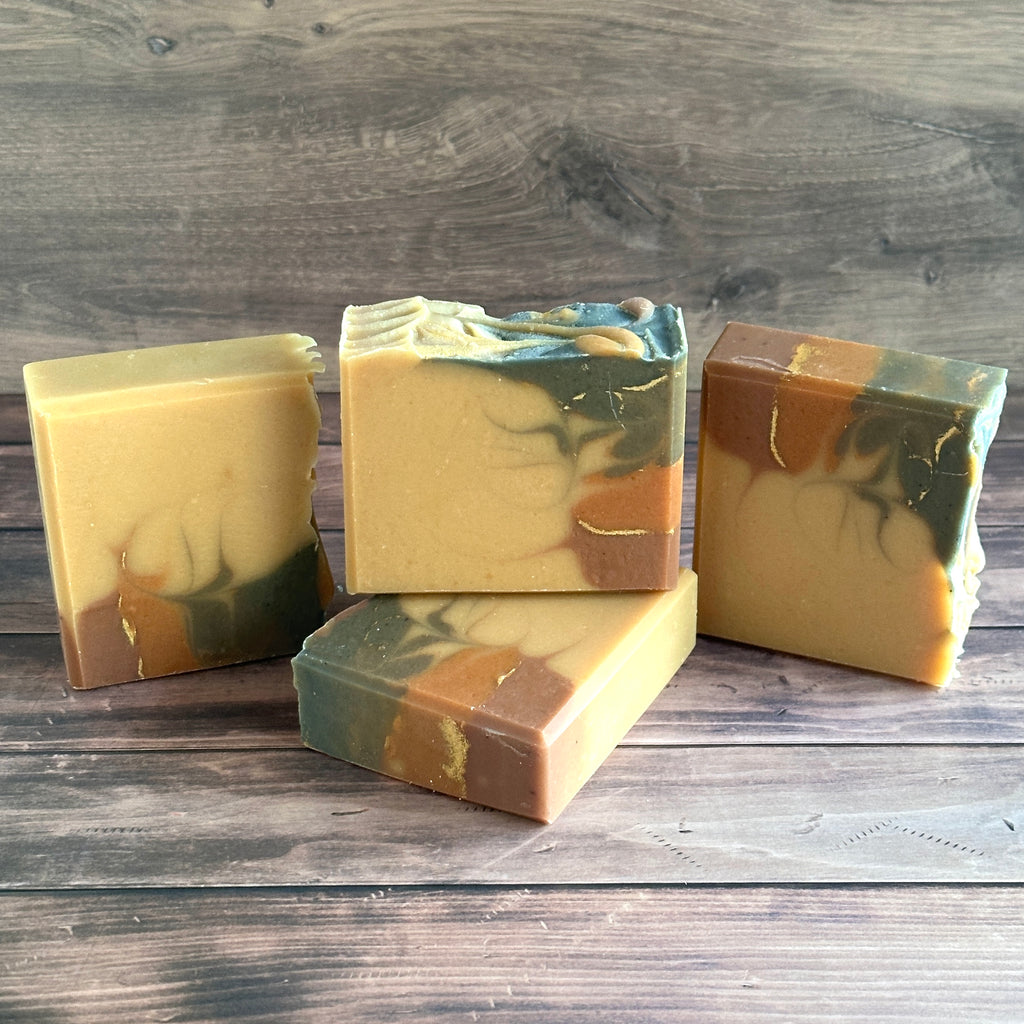 A crackling fire, a familiar chair, a peaceful memory. Hearthside combines the creamy goodness of goat's milk with the warmth of a cozy essential oil blend - Frankincense, Lavender, Cedarwood, Bergamot, Rosemary and Cassia. Earthy and sweet, with a hint of spice, this scent is grounding and soothing, just like sitting hearthside.